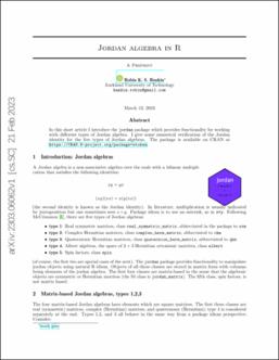 | dc.description.abstract | In this short article I introduce the "jordan" package which provides functionality for working with different types of Jordan algebra. I give some numerical verification of the Jordan identity for the five types of Jordan algebras. The package is available on CRAN at https://cran.r-project.org/package=stokes. | |
